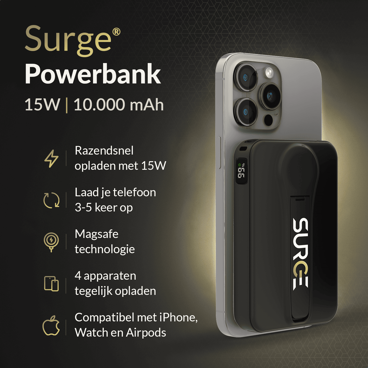 Wil jij altijd je apparaat kunnen opladen zonder een kabel te hoeven gebruiken? Bestel dan nu dit Surge-model; jouw powerbank is altijd binnen handbereik!