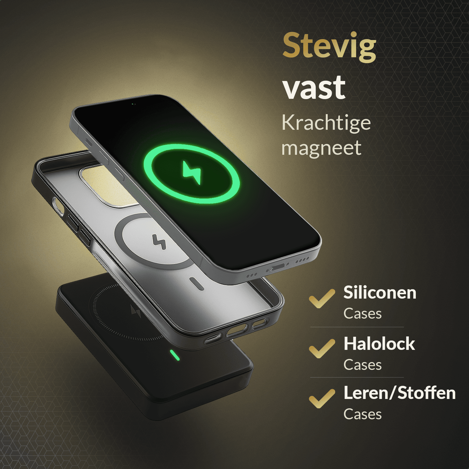 Onze powerbank van 10.000 mAh is op maat gemaakt voor de technologie. Als powerbank klikt hij veilig vast aan je apparaatvoor een probleemloze, betrouwbare laadervaring. Ook je laad je eenvoudig draadloos op via de powerbank, terwijl de powerbank stabiel blijft zitten — zelfs met siliconen-, Halolock- en leren/stoffen hoesjes. Deze powerbank combineert een slank ontwerp met sterke magneten; daardoor voelt de powerbank compact aan en blijft de powerbank netjes uitgelijnd.